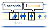 A blue tail attached to the Zoom-n-Pan keyframe on the Zoom track of the Timeline indicates the zoom duration. The longer the zoom duration, the longer the tail on the Zoom-n-Pan keyframe.