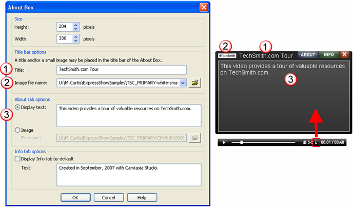 Produce and Share a Video > Produce a video using Custom Production Settings > Flash Options > Customize the ExpressShow About Box