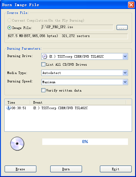 Erase: for CD-RW disc, you can erase its content before burning.