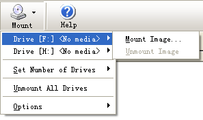 Mount Image: Select the drive you want to mount, click "Mount Image", select the image file, then click OK.