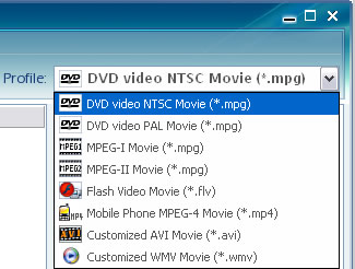After adding videos to the program, you can choose an output profile to convert the video to. Profiles for iPod, iPhone, PSP, Zune, DVD and cell phones are provided. You can even choose to extract the audio only from the video in MP3 format. All default technical parameters of selected profile will be displayed in the bottom right panel after you choose it.