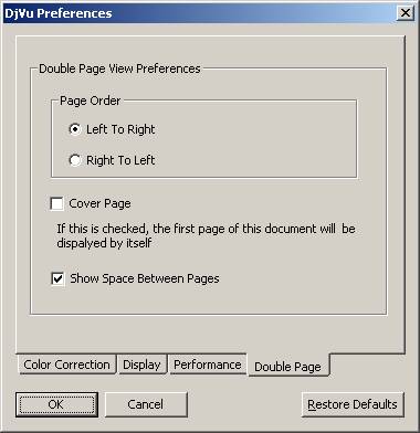 Select the “Cover Page” checkbox when you want the view to reflect the actual layout of a document that has a cover (i.e., the first double-page spread begins on the second page).