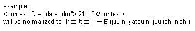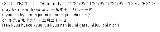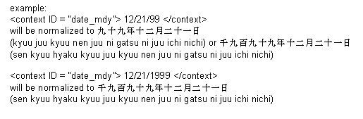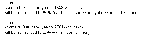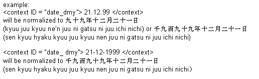 The text specifying the date is normalized so that the first group of numbers is the year, the second group is the month and the third group is the day. In the case where the year is a two-digit number, the engine reads it as a two-digit number. If the year is represented as a four-digit number, it is be represented as a four-digit year.