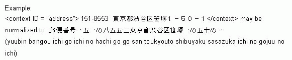 The text is normalized as an address. The exact implementation of this is left to the engine developer and may be defined in a future release of SAPI. An example is provided below: