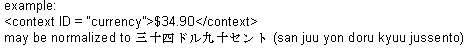 The text is normalized as a currency. The exact implementation of this is left to the engine developer and may be defined in a future release of SAPI. An example is provided below: