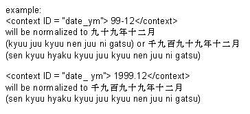 The text specifying the date is normalized so that the first group of numbers is the year and the second group is the month. In the case where the year is a two-digit number, the engine reads it as a two-digit number. If the year is represented as a four-digit number, it is be represented as a four-digit year.