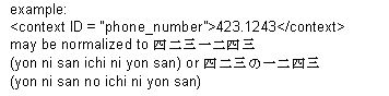 The text is normalized as a phone number. The exact implementation of this is left to the engine developer and may be defined in a future release of SAPI. An example is provided below:
